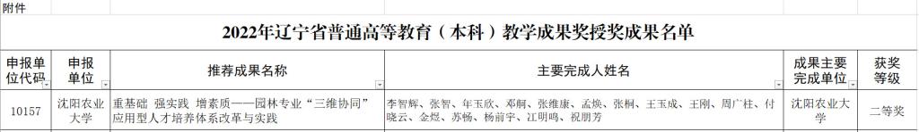 5月24日,教育厅公布了2022年辽宁省高等教育本科教学成果奖获奖名单,乐动(中国)教师李智辉、张智、年玉欣、邓舸、张维康等16人完成的教学成果《重基础 强实践 增素质——园林专业“三维协同”应用型人才培养体系改革与实践》获二等奖。