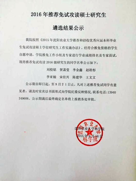 林学院2025级“直接攻博”类研究生申请人排序公示