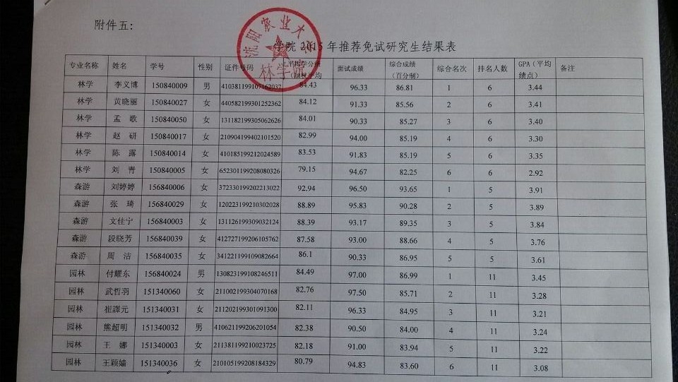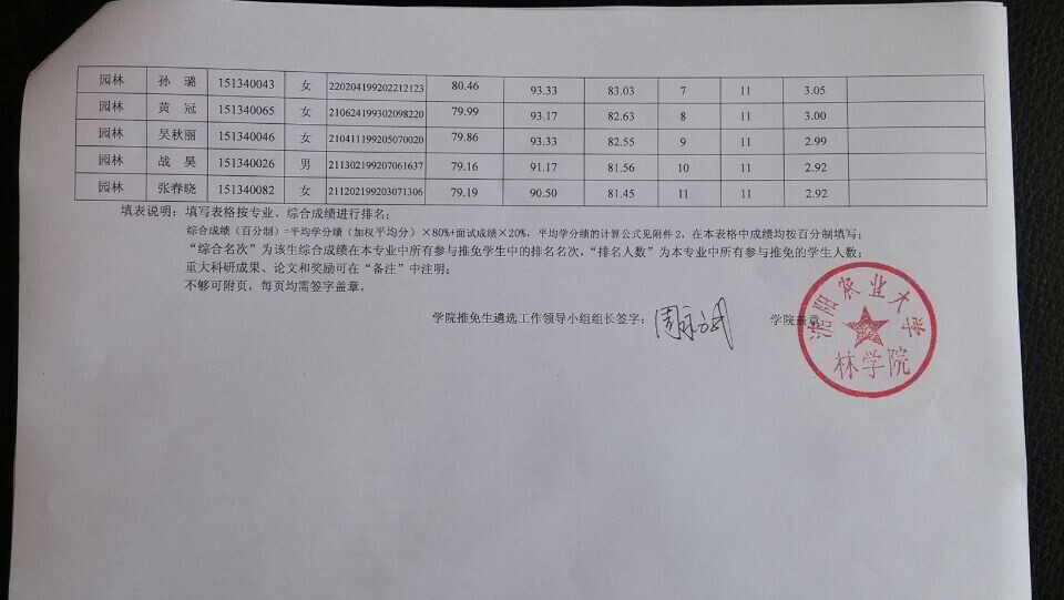 林学院2025级“直接攻博”类研究生申请人排序公示