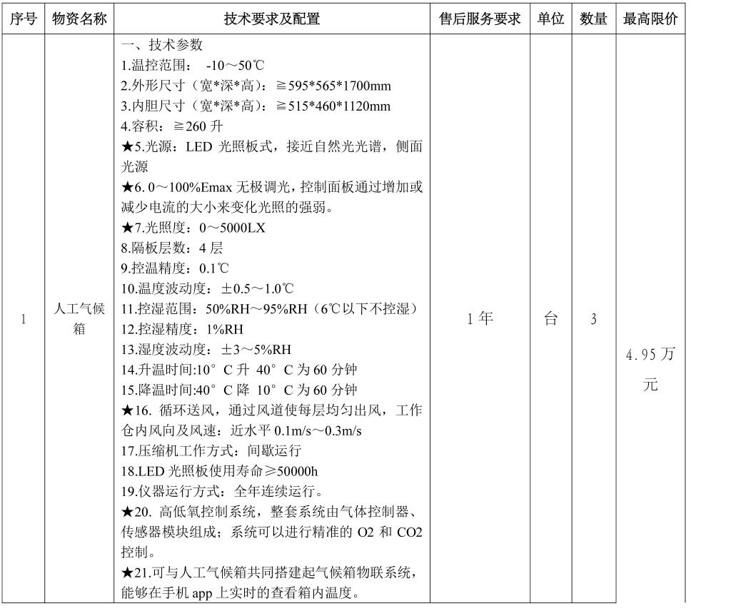 一、项目名称:乐动网页登录人工气候箱询价采购项目