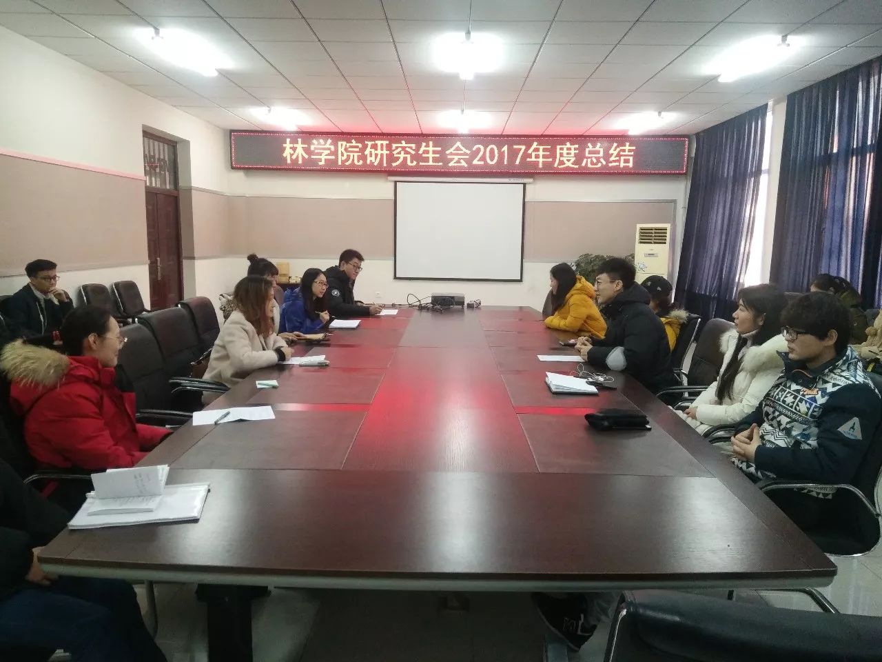 时光飞逝,岁月如梭,转眼间忙碌的2017年已过去,充满期待的2018年向我们走来。新的一年孕育着新的目标和希望,林学院研究生会2017年工作总结大会于2018年1月2日在308举行,参会人员包括王青娜老师、研会主席、副主席、各部门部长及各部门副部长。