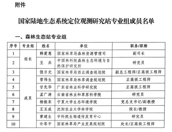 1月26日,在北京召开的国家林草局森林生态站专业组2023年度工作会议上,乐动(中国)院长王玉成教授获聘为国家陆地生态系统定位观测研究站专业组成员。国家林草局科技司李世东一级巡视员宣读了森林生态站专业组成员名单,并为专业组成员颁发聘书。