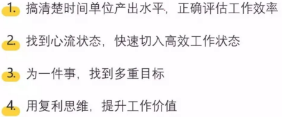 目标管理的本质是管理时间,时间管理高手并不是从不浪费时间,而是同样的时间内的产出成果更高。