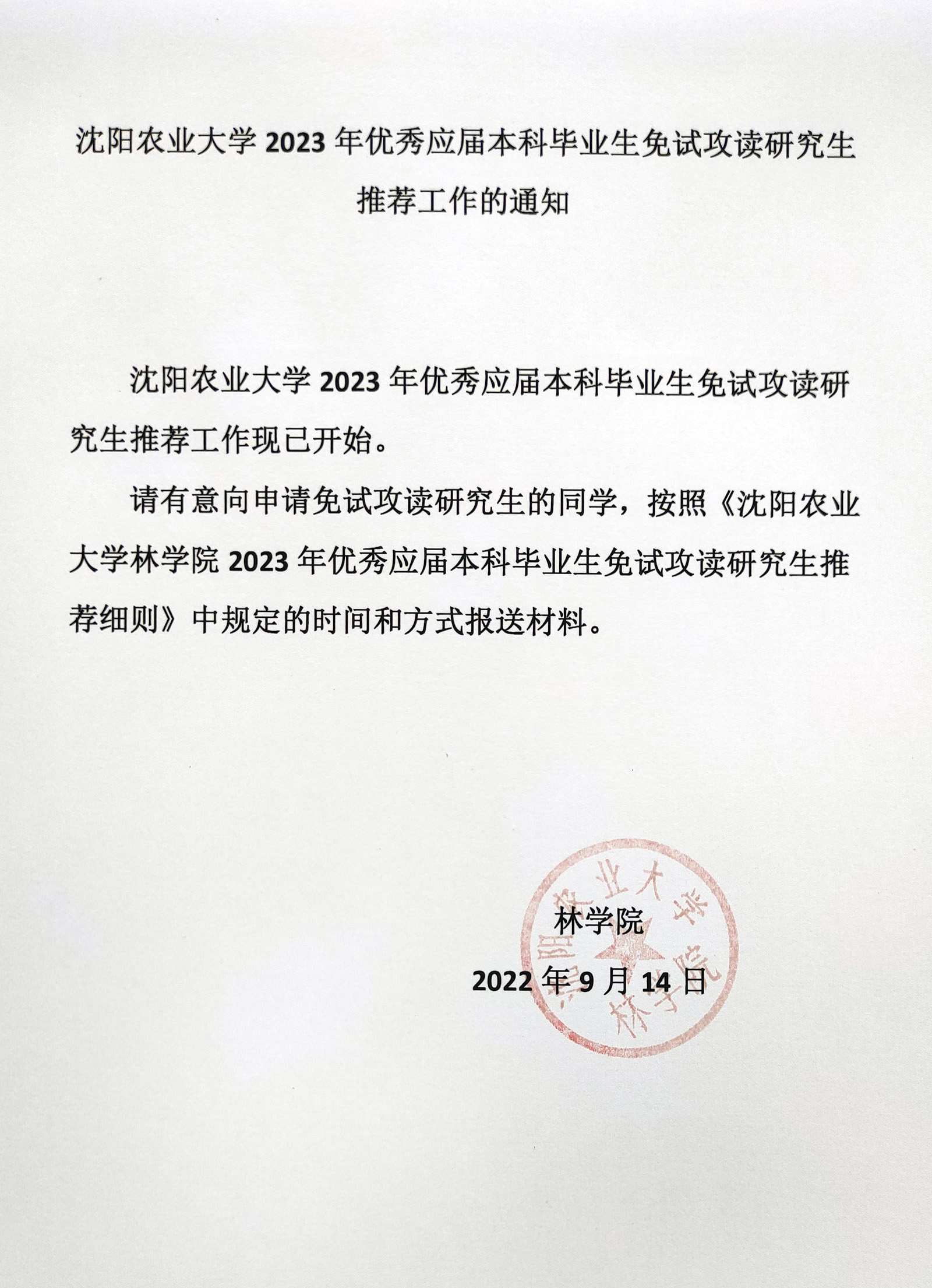林学院2023年推荐免试研究生遴选结果公示