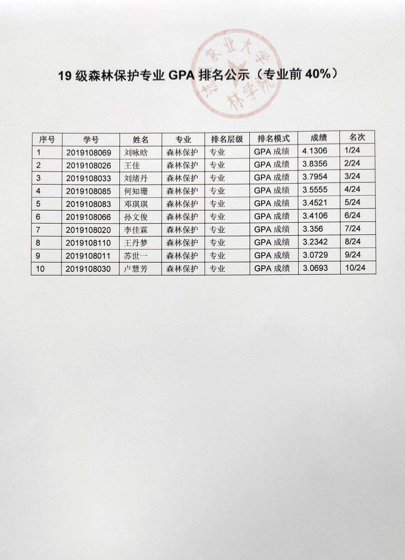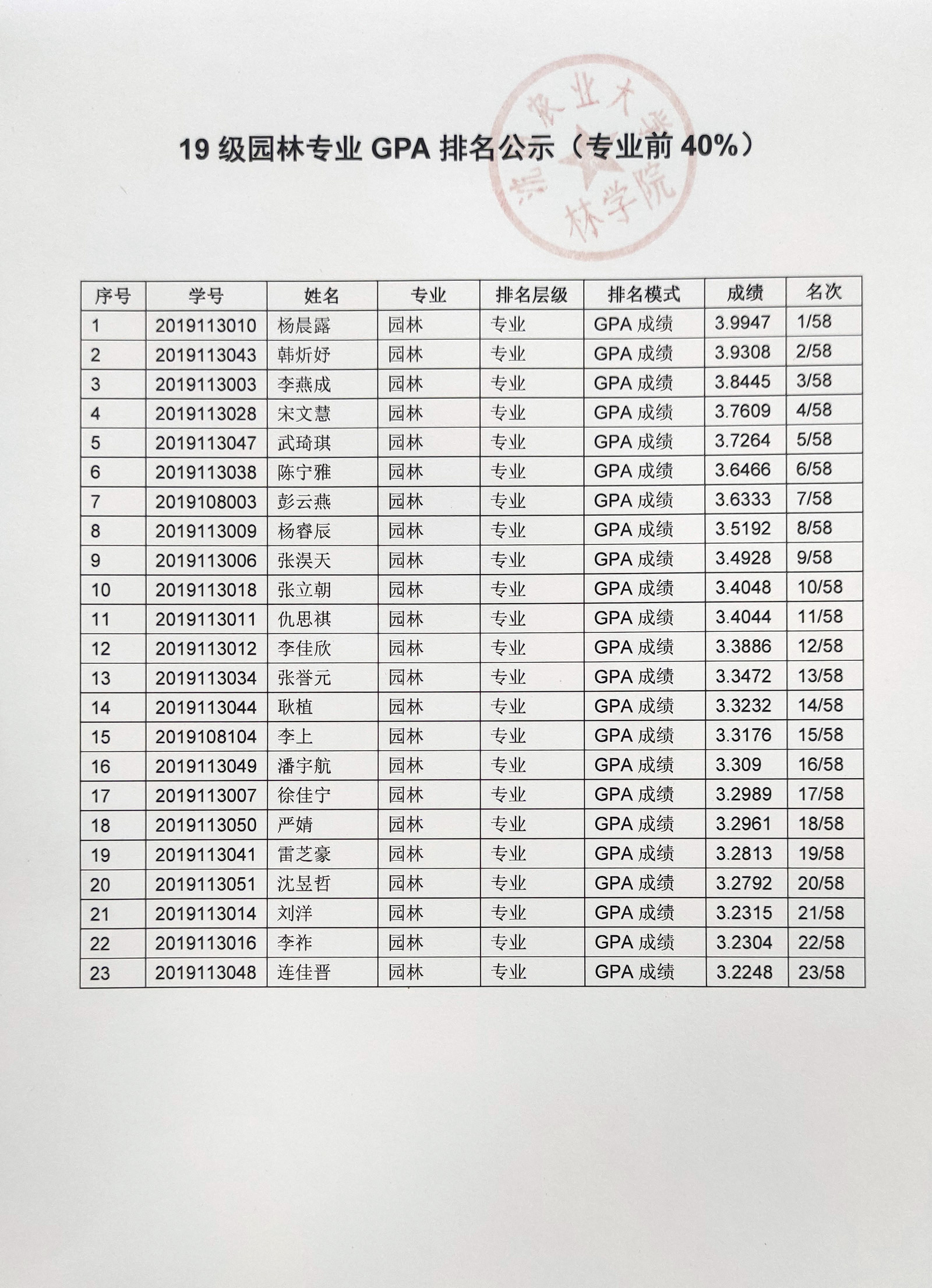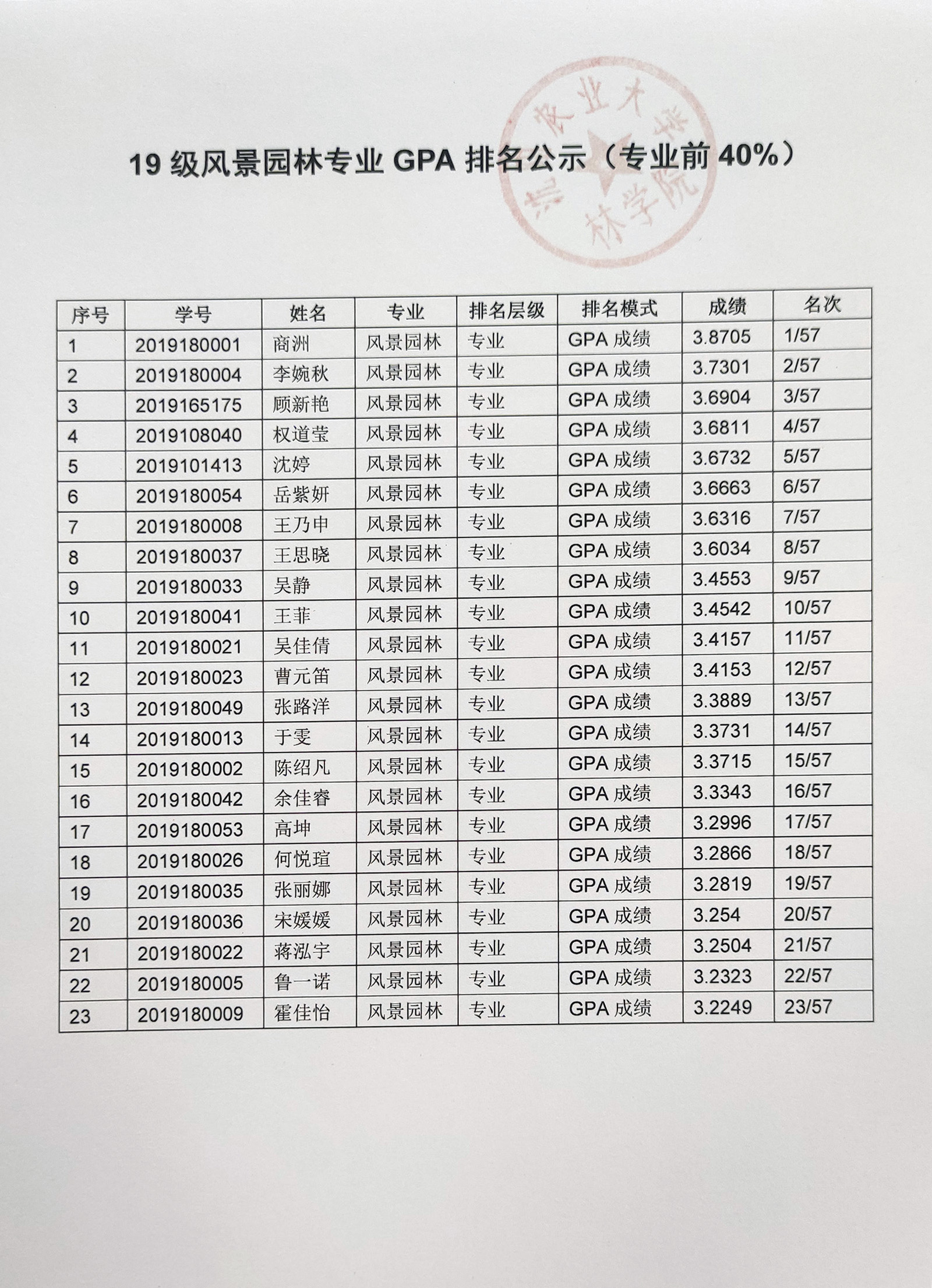 林学院2023年推免工作通知及GPA排名公示
