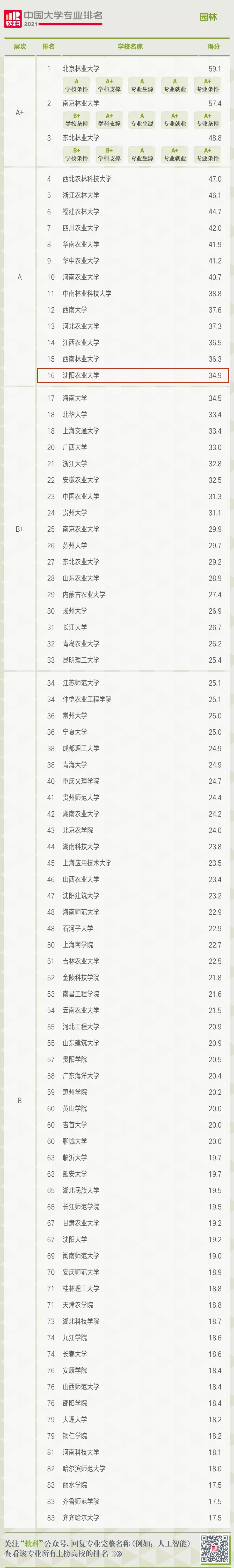 软科2021中国大学专业排名:乐动(中国)园林专业前10%