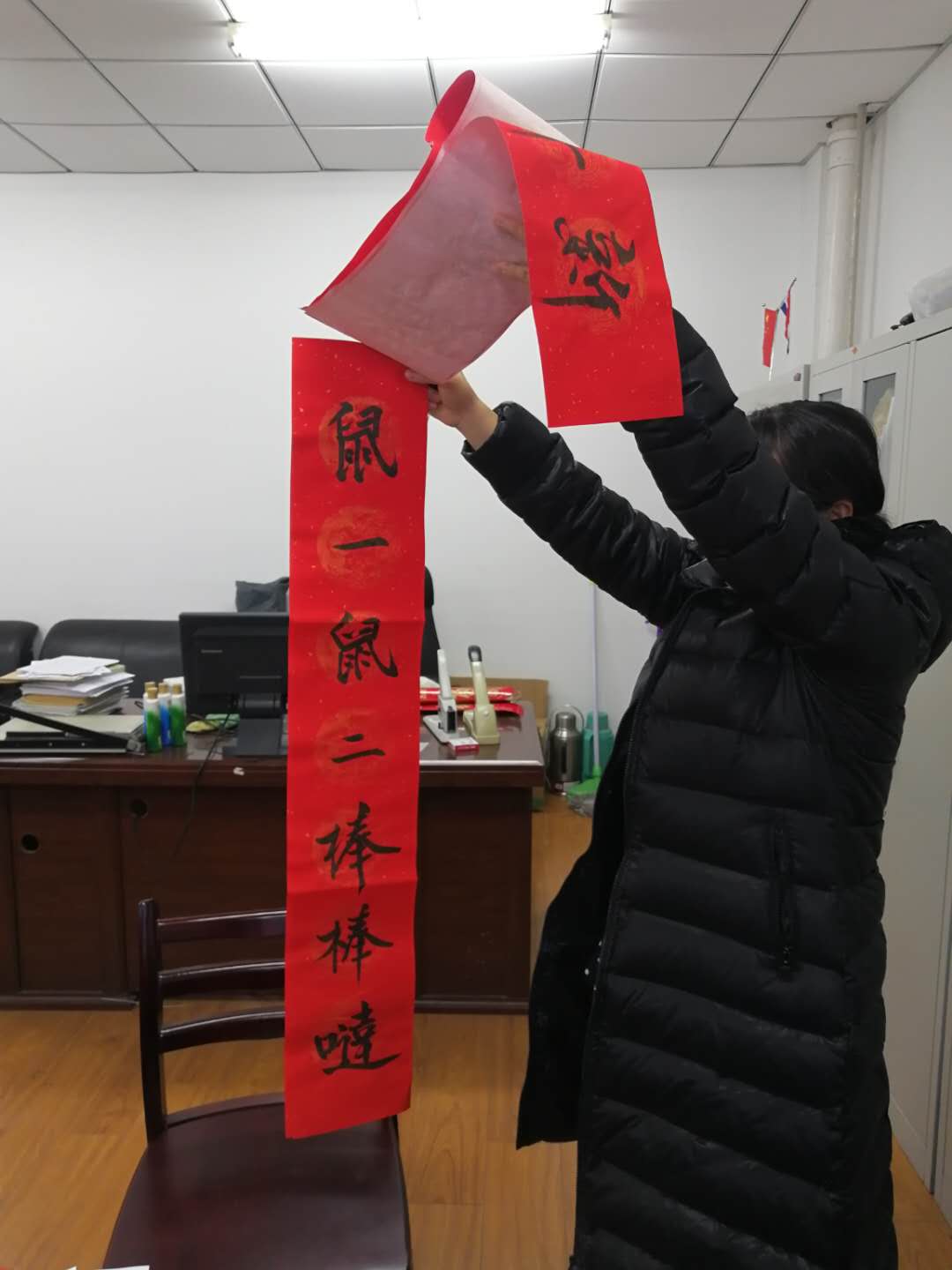 春节临近,森林保护党支部开展了为学院师生送春联活动,一副副饱蘸墨汁充满祝福的春联及“福”字送到师生手中,为新的一年增添了书香、增加了情谊。